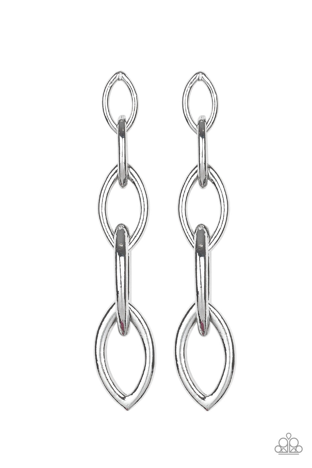 Featuring a high-sheen finish, glistening silver links gradually increase in size as they trickle from the ear for an edgy look. Earring attaches to a standard post fitting.